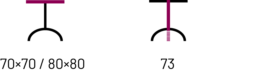 Klapptisch quadratisch: Tischplatte aus pulverbeschichtetem Blech, Gestell Stahl feuerverzinkt. Die Füsse sind mit Niveliergleitern versehen. Für Innen und Aussen.