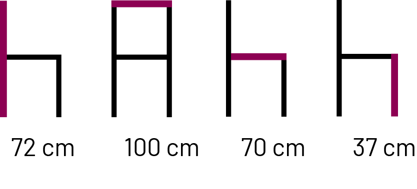 Sitz und Rücken mit 14 aufgezogenen Latten je Sitzeinheit. Gestell feuerverzinkt; Rundrohr 20 mm; mit Kunststoffgleitern. Eckmodul – Mittelmodul.